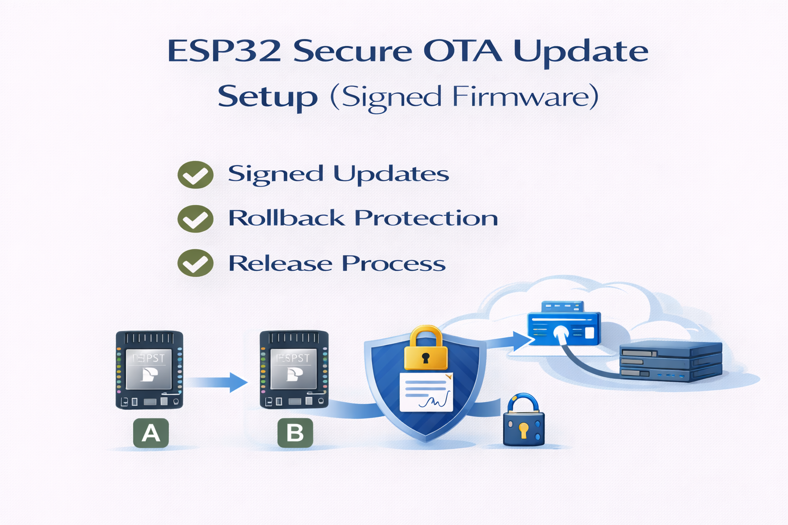 Implement secure, signed OTA updates on ESP32 with rollback protection and a repeatable release process—without risking bricked devices.
