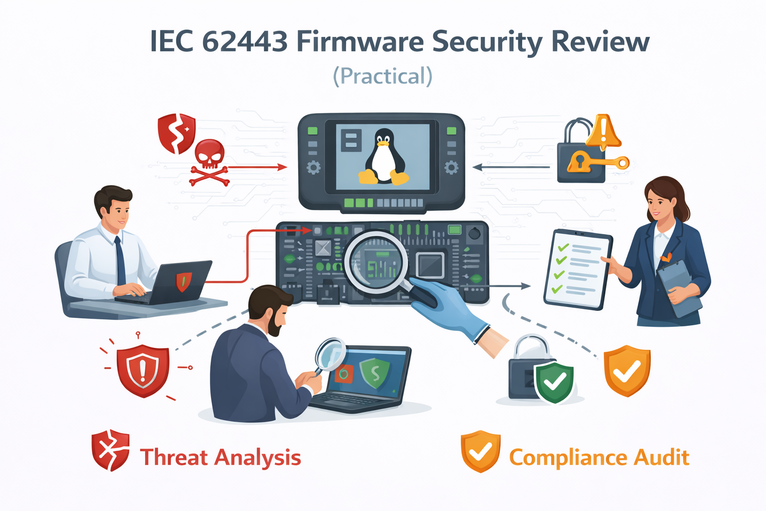 This security review is for industrial device manufacturers, IoT product teams, and embedded startups who need to understand and reduce firmware security risk—without drowning in compliance paperwork.